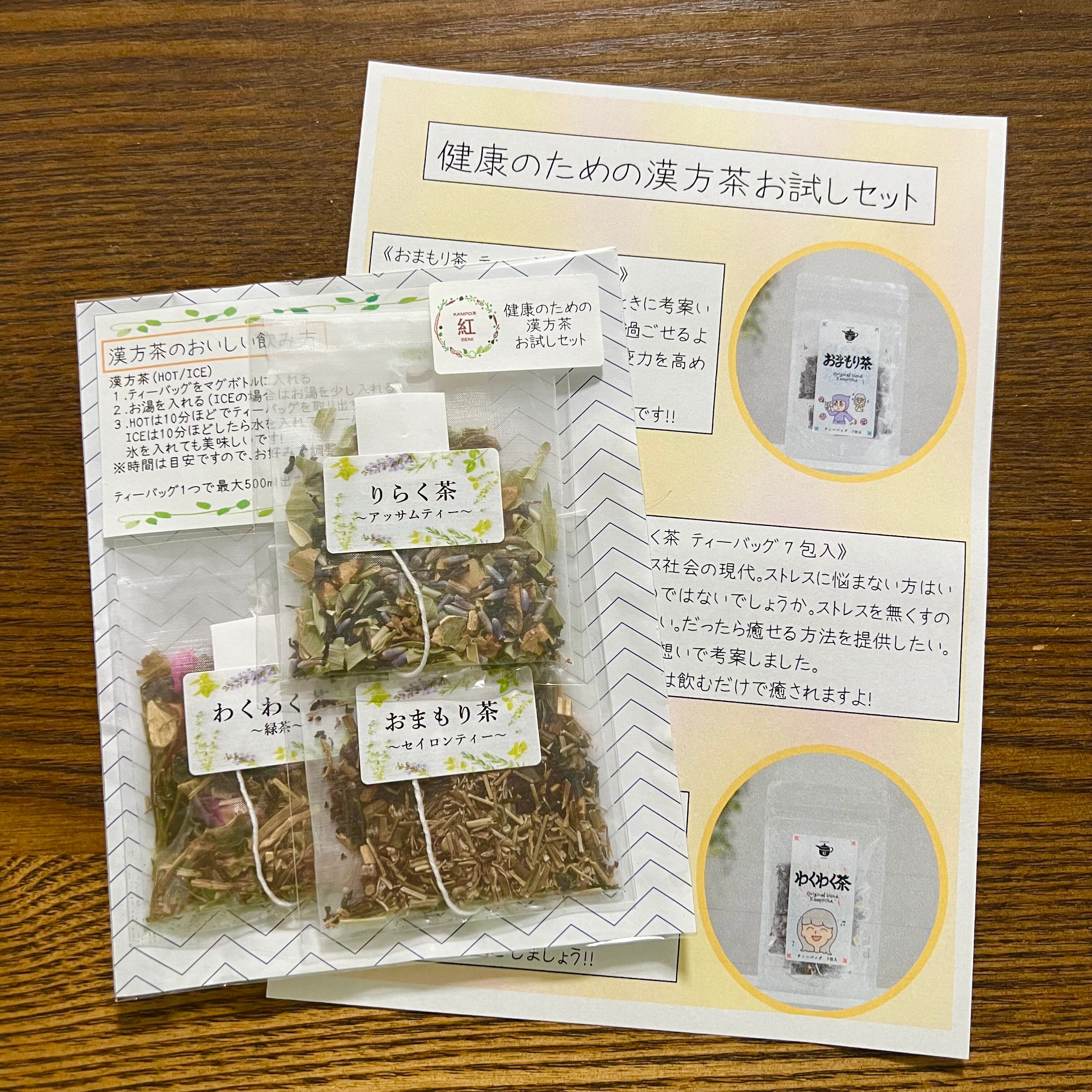 そのため、このセットには、リラックスできる「りらく茶」、免疫力を高める「おまもり茶」、イライラを解消する「わくわく茶」の3種が揃っています。